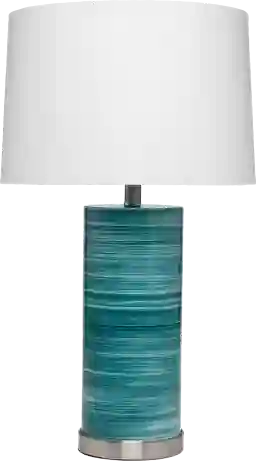 Handcrafted by skilled artisans, the Harman Lane lamp knows how to light up a room. Designed with a simple silhouette in striated layers of swirling glass from marine blues to light turquoise. Add this lamp to your home for a pop of color and style. Partial assembly may be required.
