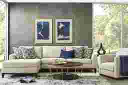 With the fine tailored look of an Italian suit and the richness of unlimited leisure, the Harmon beige sectional makes your living room a luxury destination. Featuring soft jacquard fabric in a soothing beige, this modern collection boasts loose, button tufted seat cushions for easy comfort and sharp style on the loveseat while a single attached cushion with all the same elements will make the chaise your favorite place to while away the hours with your favorite relaxation pastime. Its wedge-shaped arms provide a debonair touch of class while feather blend pillows are a penthouse elevator to Cloud 9. Warm brown framing and feet provides a perfectly fashionable visual contrast. Upholstery: 100% Polyester.