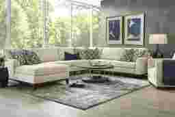 With the fine tailored look of an Italian suit and the richness of unlimited leisure, the Harmon beige sectional makes your living room a luxury destination. Featuring soft jacquard fabric in a soothing beige, this modern collection boasts loose, button tufted seat cushions for easy comfort and sharp style on the sofa and loveseat while a single attached cushion with all the same elements will make the chaise your favorite place to while away the hours with your favorite relaxation pastime. Its wedge-shaped arms provide a debonair touch of class while feather blend pillows are a penthouse elevator to Cloud 9. Warm brown framing and feet provides a perfectly fashionable visual contrast. Upholstery: 100% Polyester.
