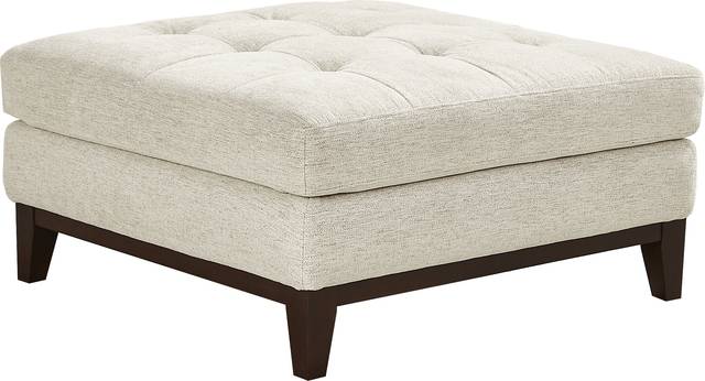 With the fine tailored look of an Italian suit and the richness of unlimited leisure, the Harmon beige ottoman is the ultimate addition to your living room collection. Complete with soft jacquard fabric and button tufting, all in as soothing beige, this modern piece's warm brown framing and feet provides a perfectly fashionable visual contrast. Upholstery: 100% Polyester.