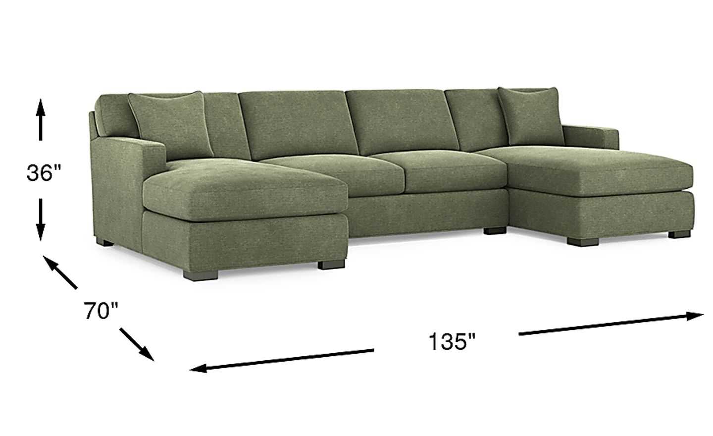 Slow mornings of easy relaxation. Everyday moments of warmth and connection. Lively gatherings flowing effortlessly into the evening. The Harmonie collection from Cindy Crawford Home is there for it all, rising to every occasion with luxurious comfort and elevated form. Wrapped in family-friendly avocado green chenille, this do-it-all sectional offers a perfect blend of versatile function and contemporary style. Refined track arms and top-stitched seams showcase a timeless tailored look that fits beautifully into any home. Gracefully curved, loose cushions are filled with a custom blend of feathers, fiber and down surrounding a supportive foam core for comfort that's soft yet structured. Matching toss pillows at each corner adds a touch of softness, while black block legs provide a subtle contrast to ground the ensemble. Upholstery: 100% Polyester.