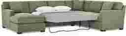 Slow mornings of easy relaxation. Everyday moments of warmth and connection. Lively gatherings flowing effortlessly into the evening. The Harmonie collection from Cindy Crawford Home is there for it all, rising to every occasion with luxurious comfort and elevated form. Wrapped in family-friendly avocado green chenille, this do-it-all sectional offers a perfect blend of versatile function and contemporary style. Refined track arms and top-stitched seams showcase a timeless tailored look that fits beautifully into any home. Gracefully curved, loose cushions are filled with a custom blend of feathers, fiber and down surrounding a supportive foam core for comfort that's soft yet structured. Hidden beneath the cushions, a Sealy Royale sleeper mattress easily pulls out to create a cozy sleep space for overnight guests. Matching toss pillows at each corner adds a touch of softness, while black block legs provide a subtle contrast to ground the ensemble. Upholstery: 100% Polyester.