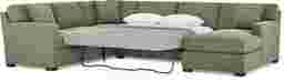 This sectional features a Sealy Royale sleeper mattress, a high-quality addition from a leading mattress authority. Designed to offer superior support and comfort for overnight guests, the mattress easily pulls out from beneath the cushions to transform your living room into a functional guest space without sacrificing the sofa's sleek, contemporary profile.