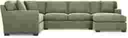 Slow mornings of easy relaxation. Everyday moments of warmth and connection. Lively gatherings flowing effortlessly into the evening. The Harmonie collection from Cindy Crawford Home is there for it all, rising to every occasion with luxurious comfort and elevated form. Wrapped in family-friendly avocado green chenille, this do-it-all sectional offers a perfect blend of versatile function and contemporary style. Refined track arms and top-stitched seams showcase a timeless tailored look that fits beautifully into any home. Gracefully curved, loose cushions are filled with a custom blend of feathers, fiber and down surrounding a supportive foam core for comfort that's soft yet structured. Hidden beneath the cushions, a Sealy Royale sleeper mattress easily pulls out to create a cozy sleep space for overnight guests. Matching toss pillows at each corner adds a touch of softness, while black block legs provide a subtle contrast to ground the ensemble. Upholstery: 100% Polyester.