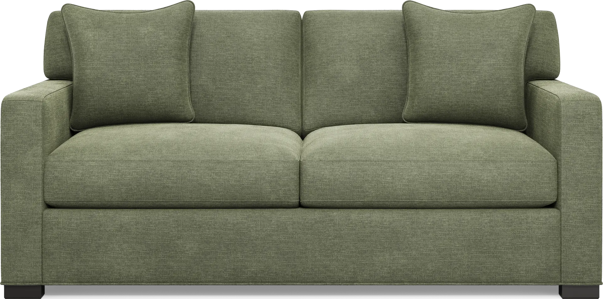 Slow mornings of easy relaxation. Everyday moments of warmth and connection. Lively gatherings flowing effortlessly into the evening. The Harmonie collection from Cindy Crawford Home is there for it all, rising to every occasion with luxurious comfort and elevated form. Wrapped in family-friendly avocado green chenille, this do-it-all apartment sofa offers a perfect blend of versatile function and contemporary style. Refined track arms and top-stitched seams showcase a timeless tailored look that fits beautifully into any home. Gracefully curved, loose cushions are filled with a custom blend of feathers, fiber and down surrounding a supportive foam core for comfort that's soft yet structured. Matching toss pillows at each corner adds a touch of softness, while black block legs provide a subtle contrast to ground the ensemble. Upholstery: 100% polyester