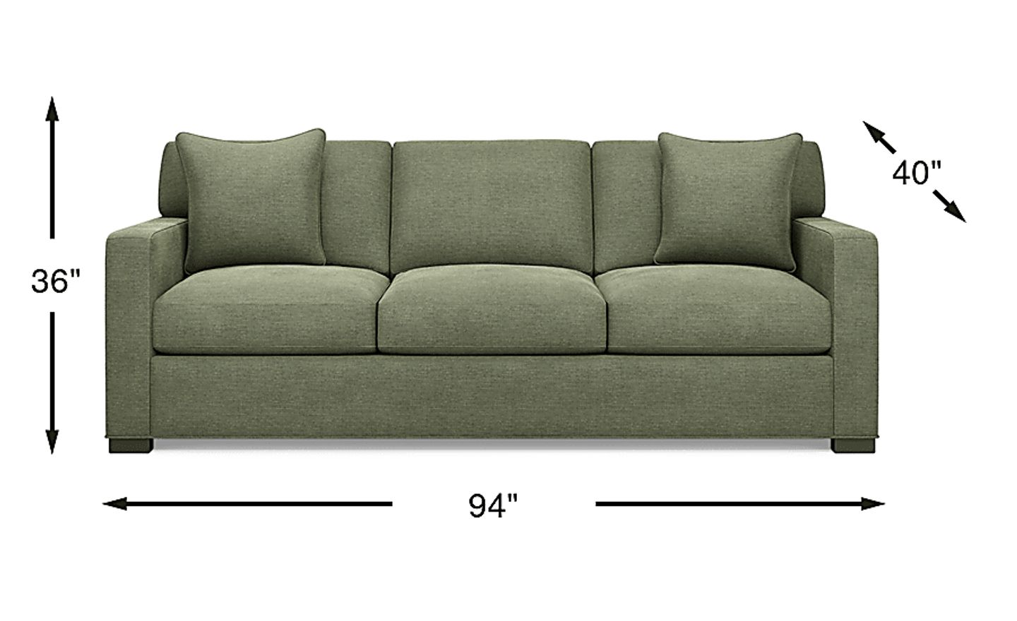 This piece achieves a sophisticated, contemporary look through its clean track arms and tailored top-stitched seams. The avocado green chenille provides a bold yet earthy focal point, while the curved pillow-back cushions add a touch of softness to the otherwise modern, linear silhouette.