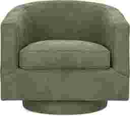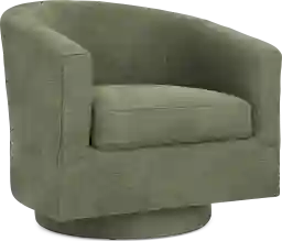 Yes, this piece is designed with a 360-degree aesthetic in mind. The elegant curved barrel back and tailored top-stitched seams provide a sophisticated look from every angle. Furthermore, the cylinder swivel base is fully wrapped in matching avocado fabric rather than leaving the metal mechanism exposed, making it an ideal candidate for "floating" in the middle of a room or as a bridge between a living area and a kitchen.