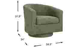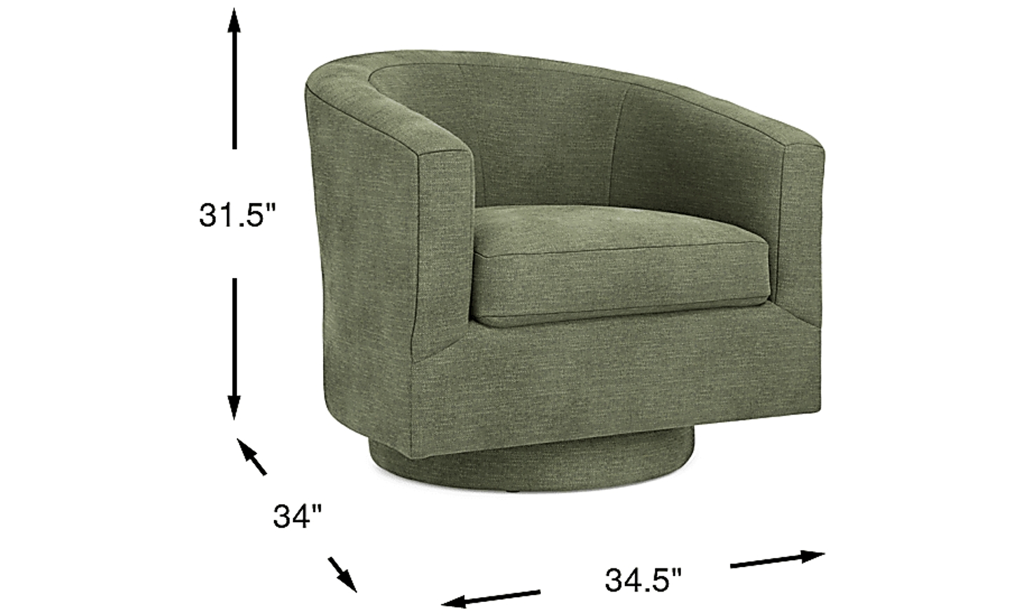 Slow mornings of easy relaxation. Everyday moments of warmth and connection. Lively gatherings flowing effortlessly into the evening. The Harmonie collection from Cindy Crawford Home is there for it all, rising to every occasion with luxurious comfort and elevated form. Wrapped in family-friendly avocado green chenille, this swivel chair offers a perfect blend of versatile function and contemporary style. A curved barrel back and top-stitched seams showcase a timeless tailored look that fits beautifully into any home. The loose seat cushion is filled with a custom blend of feathers, fiber and down surrounding a supportive foam core for comfort that's soft yet structured. The cylinder base is wrapped in matching fabric and provides a swivel motion for smooth and effortless movement. Upholstery: 100% polyester.