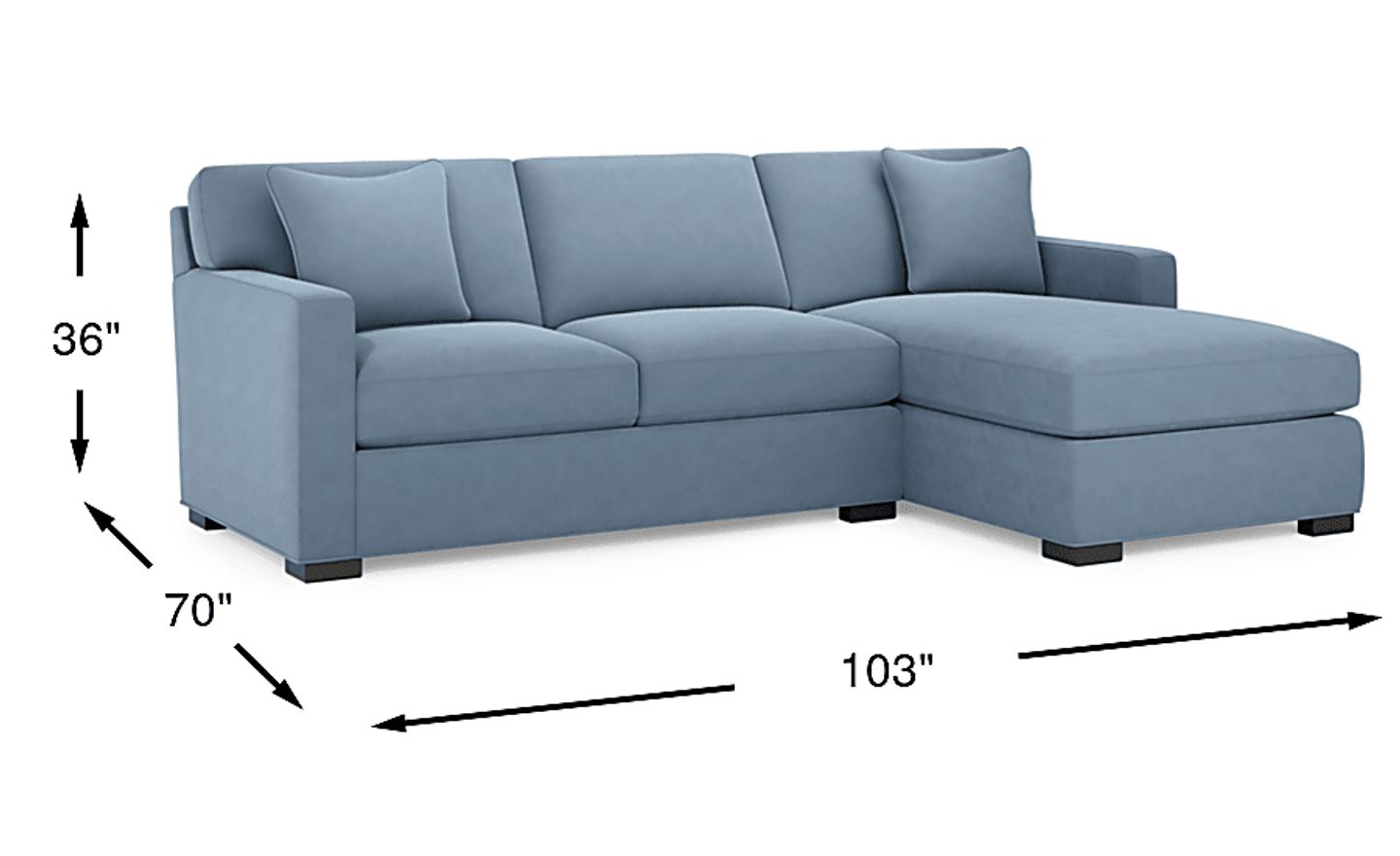 Yes, this sectional is specifically designed with a "condo" theme in mind, making it ideal for urban living and smaller footprints. With a total width of 103 inches, it provides ample seating without overwhelming a room. Its contemporary, low-profile silhouette and refined track arms help maintain an open, airy feel in more compact living spaces, ensuring you don't have to sacrifice luxury for a smaller scale.