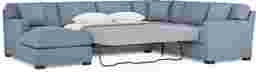 This sectional is equipped with a high-quality Sealy Royale sleeper mattress. By incorporating a mattress from a trusted, industry-leading brand, this pull-out bed provides superior support and comfort for overnight guests, distinguishing it from standard sofa bed mechanisms that rely solely on seat cushions.