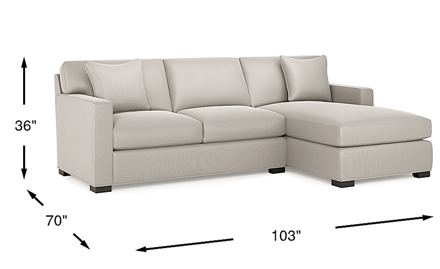 Yes, this piece is specifically designed with a "condo" theme in mind, making it an ideal choice for urban apartment living or mid-sized dens. With a total width of 103 inches and a chaise depth of 70 inches, it provides generous seating for multiple people without the overwhelming footprint of a traditional large-scale sectional. Its clean, contemporary track arms and slim block legs help maintain an open, airy feel in more compact living spaces, ensuring the room doesn't feel cramped.