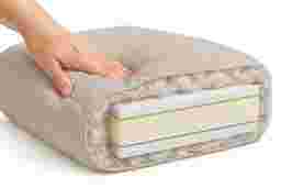 What is the benefit of the feather and down blend in the cushions?