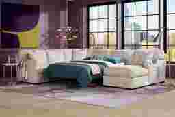 This sectional features a hidden Nature's Bed gel foam sleeper mattress that easily pulls out to create a dedicated sleep space. Unlike standard innerspring units, the gel foam technology is engineered for pressure relief and support, which significantly reduces the "bar-in-the-back" sensation common in older sleeper designs while providing a cooler, more comfortable sleeping temperature for guests.