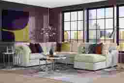 Slow mornings of easy relaxation. Everyday moments of warmth and connection. Lively gatherings flowing effortlessly into the evening. The Harmonie collection from Cindy Crawford Home is there for it all, rising to every occasion with luxurious comfort and elevated form. Wrapped in family-friendly dove gray microfiber suede, this do-it-all sectional offers a perfect blend of versatile function and contemporary style. Refined track arms and top-stitched seams showcase a timeless tailored look that fits beautifully into any home. Gracefully curved, loose cushions are filled with a custom blend of feathers, fiber and down surrounding a supportive foam core for comfort that's soft yet structured. Matching toss pillows at each corner adds a touch of softness, while black block legs provide a subtle contrast to ground the ensemble. Upholstery: 100% Polyester.
