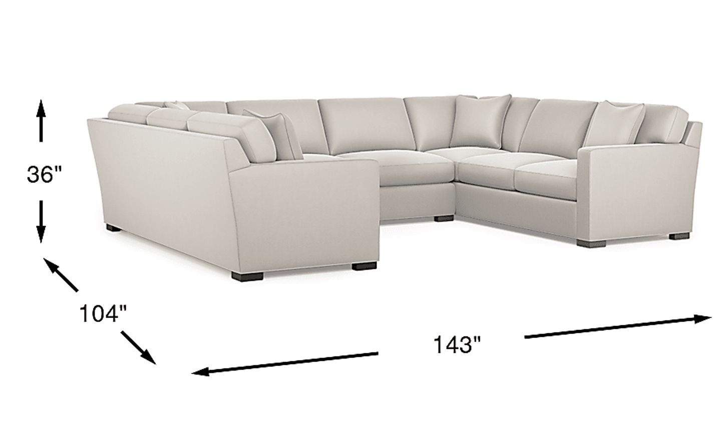 With a generous footprint of 143"w x 104"d, this sectional is designed for spacious living areas or open-concept "Great Rooms." To ensure a perfect fit, our experts recommend leaving at least 18–24 inches of walkway space around the piece. Before ordering, verify that your entryways, hallways, and corners can accommodate the 36-inch height and deep frame during delivery. For the best visual balance, the sectional should ideally occupy about two-thirds of the wall it sits against.