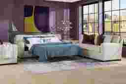 Slow mornings of easy relaxation. Everyday moments of warmth and connection. Lively gatherings flowing effortlessly into the evening. The Harmonie collection from Cindy Crawford Home is there for it all, rising to every occasion with luxurious comfort and elevated form. Wrapped in family-friendly dove gray microfiber suede, this do-it-all living room offers a perfect blend of versatile function and contemporary style. Refined track arms and top-stitched seams showcase a timeless tailored look that fits beautifully into any home. Gracefully curved, loose cushions are filled with a custom blend of feathers, fiber and down surrounding a supportive foam core for comfort that's soft yet structured. Hidden beneath the sofa cushions, a Sealy Royale sleeper mattress easily pulls out to create a cozy sleep space for overnight guests. Matching toss pillows at each corner adds a touch of softness, while black block legs provide a subtle contrast to ground the ensemble. Upholstery: 100% Polyester. Cleaning Instructions: Use water based cleaning agents or foam. Tables and lamps not as shown in room image. Accent pillows not included.