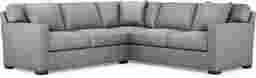 Slow mornings of easy relaxation. Everyday moments of warmth and connection. Lively gatherings flowing effortlessly into the evening. The Harmonie collection from Cindy Crawford Home is there for it all, rising to every occasion with luxurious comfort and elevated form. Wrapped in family-friendly stone-gray woven fabric, this do-it-all sectional offers a perfect blend of versatile function and contemporary style. Refined track arms and top-stitched seams showcase a timeless tailored look that fits beautifully into any home. Gracefully curved, loose cushions are filled with a custom blend of feathers, fiber and down surrounding a supportive foam core for comfort that's soft yet structured. Matching toss pillows at each corner adds a touch of softness, while black block legs provide a subtle contrast to ground the ensemble. Upholstery: 100% Polyester.