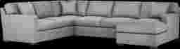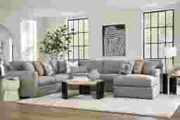Slow mornings of easy relaxation. Everyday moments of warmth and connection. Lively gatherings flowing effortlessly into the evening. The Harmonie collection from Cindy Crawford Home is there for it all, rising to every occasion with luxurious comfort and elevated form. Wrapped in family-friendly stone-gray woven fabric, this do-it-all sectional offers a perfect blend of versatile function and contemporary style. Refined track arms and top-stitched seams showcase a timeless tailored look that fits beautifully into any home. Gracefully curved, loose cushions are filled with a custom blend of feathers, fiber and down surrounding a supportive foam core for comfort that's soft yet structured. Matching toss pillows at each corner adds a touch of softness, while black block legs provide a subtle contrast to ground the ensemble. Upholstery: 100% Polyester.