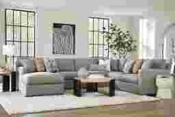 Slow mornings of easy relaxation. Everyday moments of warmth and connection. Lively gatherings flowing effortlessly into the evening. The Harmonie collection from Cindy Crawford Home is there for it all, rising to every occasion with luxurious comfort and elevated form. Wrapped in family-friendly stone-gray woven fabric, this do-it-all sectional offers a perfect blend of versatile function and contemporary style. Refined track arms and top-stitched seams showcase a timeless tailored look that fits beautifully into any home. Gracefully curved, loose cushions are filled with a custom blend of feathers, fiber and down surrounding a supportive foam core for comfort that's soft yet structured. Hidden beneath the cushions, a Sealy Royale sleeper mattress easily pulls out to create a cozy sleep space for overnight guests. Matching toss pillows at each corner adds a touch of softness, while black block legs provide a subtle contrast to ground the ensemble. Upholstery: 100% Polyester.