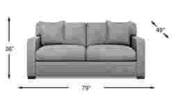Slow mornings of easy relaxation. Everyday moments of warmth and connection. Lively gatherings flowing effortlessly into the evening. The Harmonie collection from Cindy Crawford Home is there for it all, rising to every occasion with luxurious comfort and elevated form. Wrapped in family-friendly stone-gray woven fabric, this do-it-all apartment sofa offers a perfect blend of versatile function and contemporary style. Refined track arms and top-stitched seams showcase a timeless tailored look that fits beautifully into any home. Gracefully curved, loose cushions are filled with a custom blend of feathers, fiber and down surrounding a supportive foam core for comfort that's soft yet structured. Hidden beneath the cushions, a Nature's Bed gel foam sleeper mattress easily pulls out to create a cool, cozy sleep space for overnight guests. Matching toss pillows at each corner adds a touch of softness, while black block legs provide a subtle contrast to ground the ensemble. Upholstery: 100% polyester