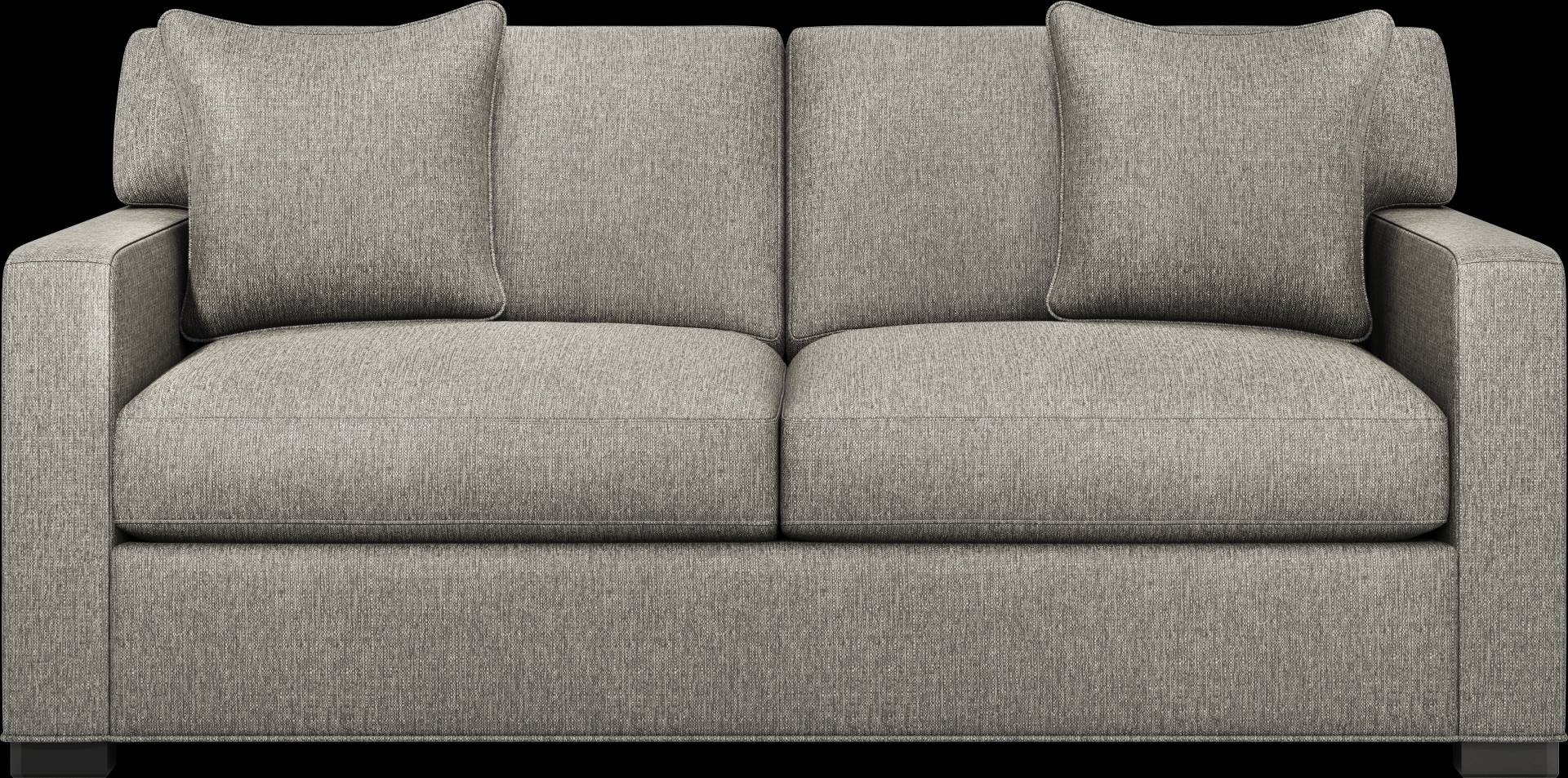 Slow mornings of easy relaxation. Everyday moments of warmth and connection. Lively gatherings flowing effortlessly into the evening. The Harmonie collection from Cindy Crawford Home is there for it all, rising to every occasion with luxurious comfort and elevated form. Wrapped in family-friendly stone-gray woven fabric, this do-it-all apartment sofa offers a perfect blend of versatile function and contemporary style. Refined track arms and top-stitched seams showcase a timeless tailored look that fits beautifully into any home. Gracefully curved, loose cushions are filled with a custom blend of feathers, fiber and down surrounding a supportive foam core for comfort that's soft yet structured. Matching toss pillows at each corner adds a touch of softness, while black block legs provide a subtle contrast to ground the ensemble. Upholstery: 100% polyester
