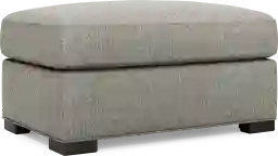 Slow mornings of easy relaxation. Everyday moments of warmth and connection. Lively gatherings flowing effortlessly into the evening. The Harmonie collection from Cindy Crawford Home is there for it all, rising to every occasion with luxurious comfort and elevated form. Wrapped in family-friendly stone-gray woven fabric, this ottoman offers a perfect, contemporary style. Top-stitched seams showcase a timeless tailored look, while black block legs provide a subtle contrast to ground the piece. The gracefully curved cushion is filled with a custom blend of feathers, fiber and down surrounding a supportive foam core for comfort that's soft yet structured. Upholstery: 100% polyester