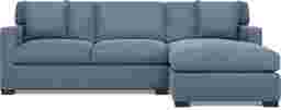 Because this sectional features loose cushions with a feather and down blend, we recommend regular fluffing and rotation as part of your maintenance routine. Periodically flipping and rotating the cushions ensures that wear is distributed evenly and helps the feathers maintain their natural loft and support. For the sapphire blue chenille, our experts suggest regular vacuuming with a soft brush attachment to remove dust and maintain the fabric's vibrant appearance.
