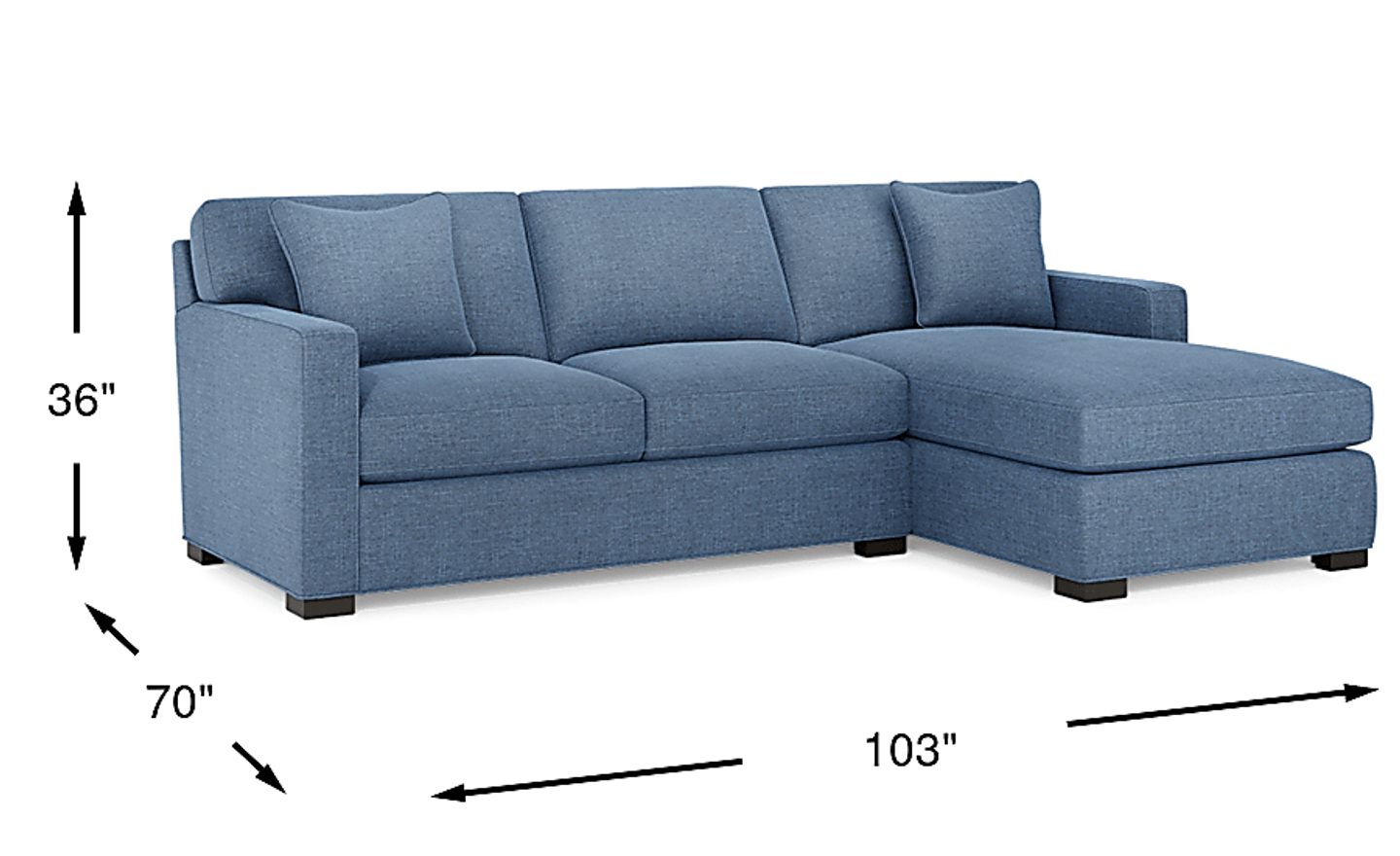 Because this sectional features loose cushions with a feather and down blend, we recommend regular fluffing and rotation as part of your maintenance routine. Periodically flipping and rotating the cushions ensures that wear is distributed evenly and helps the feathers maintain their natural loft and support. For the sapphire blue chenille, our experts suggest regular vacuuming with a soft brush attachment to remove dust and maintain the fabric's vibrant appearance.