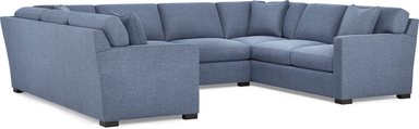 Slow mornings of easy relaxation. Everyday moments of warmth and connection. Lively gatherings flowing effortlessly into the evening. The Harmonie collection from Cindy Crawford Home is there for it all, rising to every occasion with luxurious comfort and elevated form. Wrapped in family-friendly sapphire blue chenille, this do-it-all sectional offers a perfect blend of versatile function and contemporary style. Refined track arms and top-stitched seams showcase a timeless tailored look that fits beautifully into any home. Gracefully curved, loose cushions are filled with a custom blend of feathers, fiber and down surrounding a supportive foam core for comfort that's soft yet structured. Hidden beneath the cushions, a Nature's Bed gel foam sleeper mattress easily pulls out to create a cool, cozy sleep space for overnight guests. Matching toss pillows at each corner adds a touch of softness, while black block legs provide a subtle contrast to ground the ensemble. Upholstery: 100% Polyester.