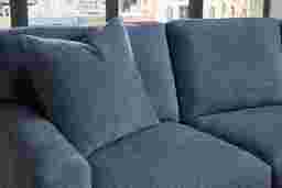 Slow mornings of easy relaxation. Everyday moments of warmth and connection. Lively gatherings flowing effortlessly into the evening. The Harmonie collection from Cindy Crawford Home is there for it all, rising to every occasion with luxurious comfort and elevated form. Wrapped in family-friendly sapphire blue chenille, this do-it-all sectional offers a perfect blend of versatile function and contemporary style. Refined track arms and top-stitched seams showcase a timeless tailored look that fits beautifully into any home. Gracefully curved, loose cushions are filled with a custom blend of feathers, fiber and down surrounding a supportive foam core for comfort that's soft yet structured. Matching toss pillows at each corner adds a touch of softness, while black block legs provide a subtle contrast to ground the ensemble. Upholstery: 100% Polyester.