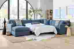 This contemporary sectional features a high-quality Sealy Royale sleeper mattress. Designed by sleep experts, Sealy mattresses are engineered to provide a supportive and restful night's sleep, ensuring your guests enjoy a level of comfort that far exceeds a standard sofa bed.