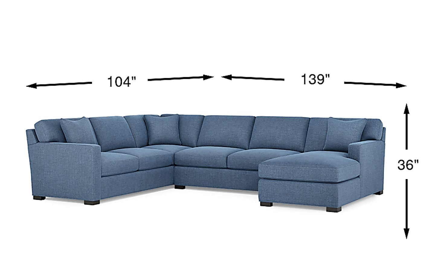 This 3-piece sectional has a generous footprint of 139"w x 104"d x 36"h. When planning your room layout, particularly in contemporary or open-concept spaces, it is important to measure for the 104-inch depth of the chaise and ensure there is ample clearance for the Sealy sleeper mattress to extend fully without obstructing walkways.