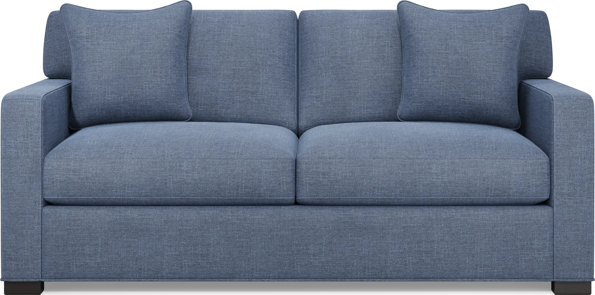 Slow mornings of easy relaxation. Everyday moments of warmth and connection. Lively gatherings flowing effortlessly into the evening. The Harmonie collection from Cindy Crawford Home is there for it all, rising to every occasion with luxurious comfort and elevated form. Wrapped in family-friendly sapphire blue chenille, this do-it-all apartment sofa offers a perfect blend of versatile function and contemporary style. Refined track arms and top-stitched seams showcase a timeless tailored look that fits beautifully into any home. Gracefully curved, loose cushions are filled with a custom blend of feathers, fiber and down surrounding a supportive foam core for comfort that's soft yet structured. Matching toss pillows at each corner adds a touch of softness, while black block legs provide a subtle contrast to ground the ensemble. Upholstery: 100% Polyester.