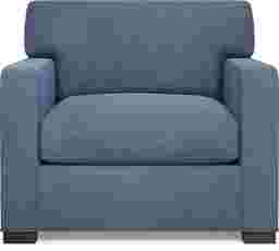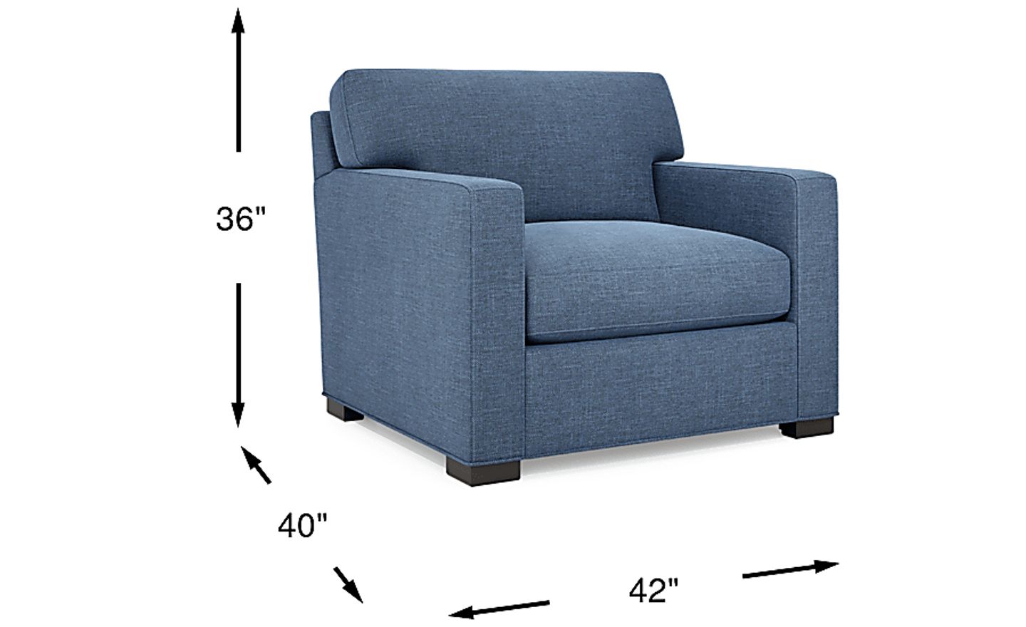 This chair features a generous oversized scale, measuring 42"w x 40"d x 36"h. With a seat depth of 40 inches, it is deep enough for full-body relaxation. Before delivery, we recommend measuring your entryways and hallways; the block legs can typically be removed to provide extra clearance if you are moving the piece through narrow door frames or tight urban spaces.
