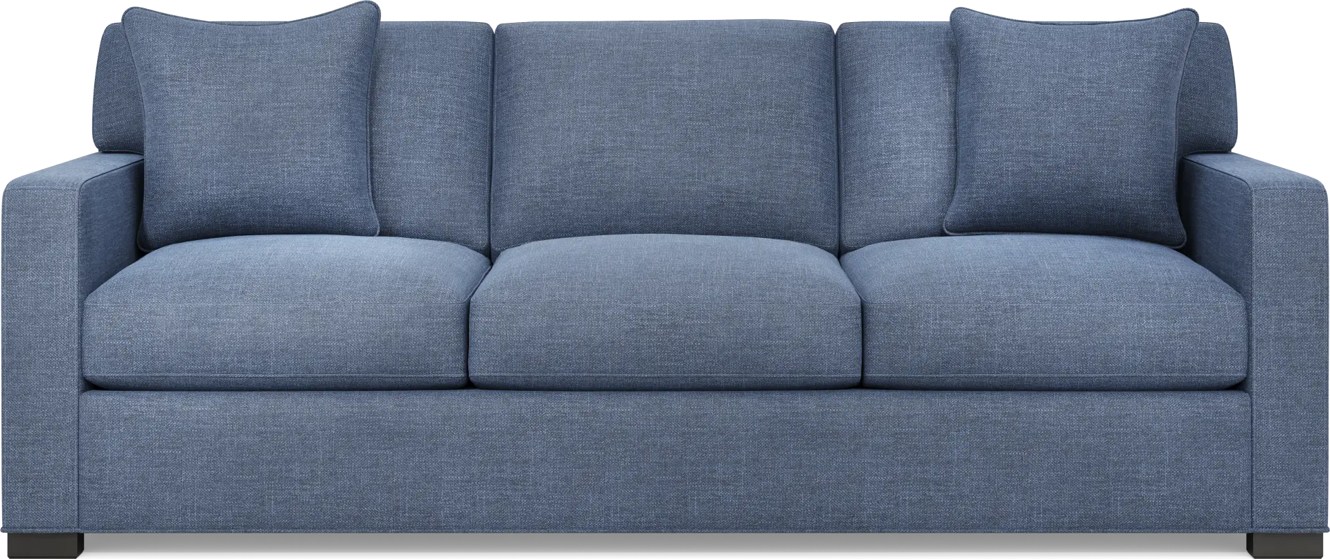 Slow mornings of easy relaxation. Everyday moments of warmth and connection. Lively gatherings flowing effortlessly into the evening. The Harmonie collection from Cindy Crawford Home is there for it all, rising to every occasion with luxurious comfort and elevated form. Wrapped in family-friendly sapphire blue chenille, this do-it-all sofa offers a perfect blend of versatile function and contemporary style. Refined track arms and top-stitched seams showcase a timeless tailored look that fits beautifully into any home. Gracefully curved, loose cushions are filled with a custom blend of feathers, fiber and down surrounding a supportive foam core for comfort that's soft yet structured. Matching toss pillows at each corner adds a touch of softness, while black block legs provide a subtle contrast to ground the ensemble. Upholstery: 100% Polyester.