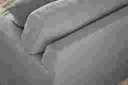 This sectional features loose cushions filled with a custom blend of feathers, fiber, and down wrapped around a high-resiliency foam core. This layered construction provides a "sink-in" feel and luxurious softness while the foam core ensures the cushions retain their shape and provide structured support over time. Because the cushions are loose, they can be easily rotated and fluffed to maintain their loft and even out wear.