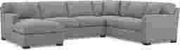 Slow mornings of easy relaxation. Everyday moments of warmth and connection. Lively gatherings flowing effortlessly into the evening. The Harmonie collection from Cindy Crawford Home is there for it all, rising to every occasion with luxurious comfort and elevated form. Wrapped in family-friendly steel gray microfiber suede, this do-it-all sectional offers a perfect blend of versatile function and contemporary style. Refined track arms and top-stitched seams showcase a timeless tailored look that fits beautifully into any home. Gracefully curved, loose cushions are filled with a custom blend of feathers, fiber and down surrounding a supportive foam core for comfort that's soft yet structured. Matching toss pillows at each corner adds a touch of softness, while black block legs provide a subtle contrast to ground the ensemble. Upholstery: 100% polyester. Accent pillows not included.