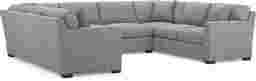 Slow mornings of easy relaxation. Everyday moments of warmth and connection. Lively gatherings flowing effortlessly into the evening. The Harmonie collection from Cindy Crawford Home is there for it all, rising to every occasion with luxurious comfort and elevated form. Wrapped in family-friendly steel gray microfiber suede, this do-it-all sectional offers a perfect blend of versatile function and contemporary style. Refined track arms and top-stitched seams showcase a timeless tailored look that fits beautifully into any home. Gracefully curved, loose cushions are filled with a custom blend of feathers, fiber and down surrounding a supportive foam core for comfort that's soft yet structured. Matching toss pillows at each corner adds a touch of softness, while black block legs provide a subtle contrast to ground the ensemble. Upholstery: 100% polyester. Accent pillows not included.
