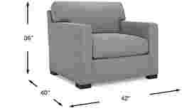 Slow mornings of easy relaxation. Everyday moments of warmth and connection. Lively gatherings flowing effortlessly into the evening. The Harmonie collection from Cindy Crawford Home is there for it all, rising to every occasion with luxurious comfort and elevated form. Wrapped in family-friendly steel gray microfiber suede, this do-it-all chair offers a perfect blend of versatile function and contemporary style. Refined track arms and top-stitched seams showcase a timeless tailored look that fits beautifully into any home. Gracefully curved, loose cushions are filled with a custom blend of feathers, fiber and down surrounding a supportive foam core for comfort that's soft yet structured. Black block legs provide a subtle contrast to ground the ensemble. Upholstery: 100% polyester.
