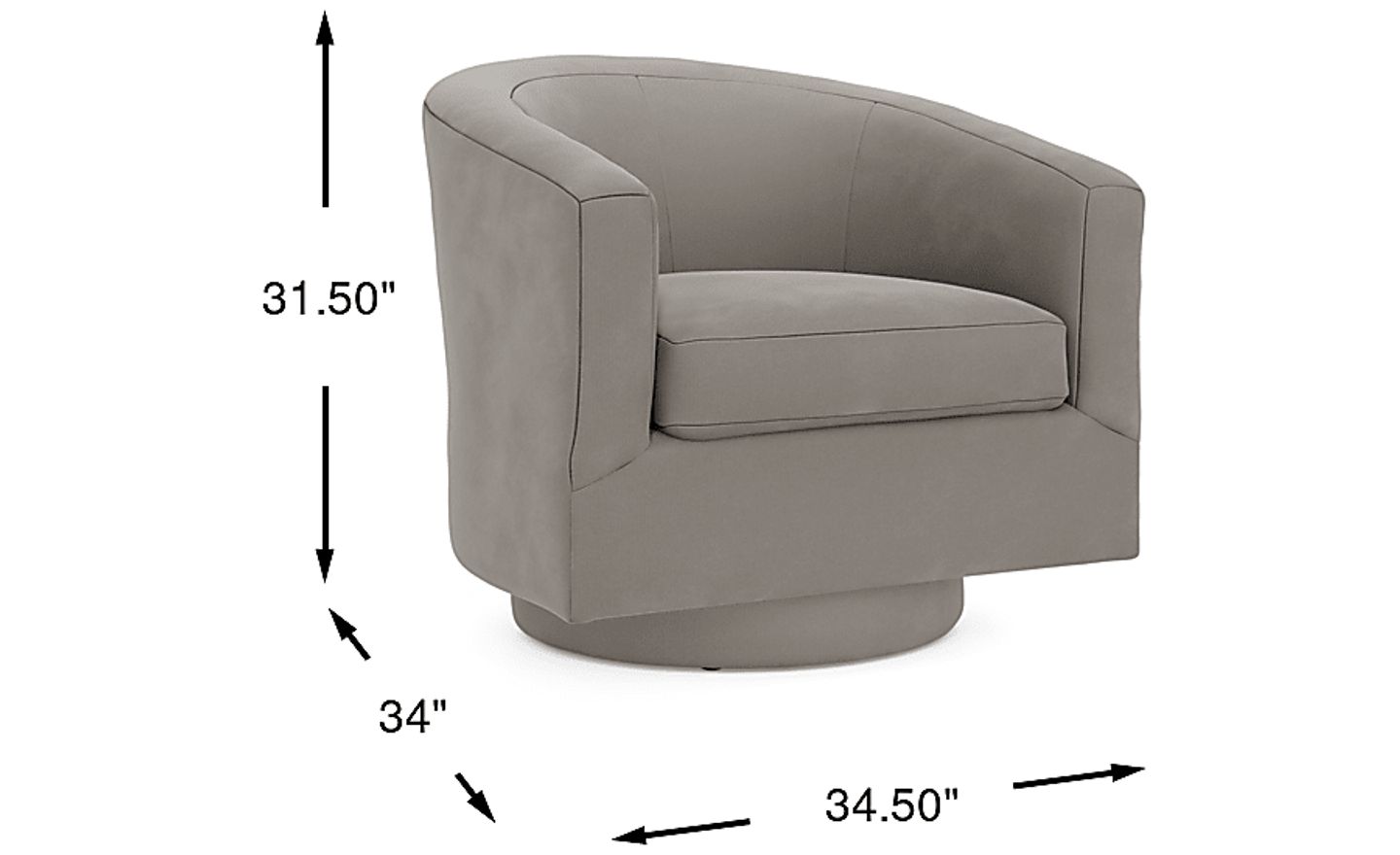 Slow mornings of easy relaxation. Everyday moments of warmth and connection. Lively gatherings flowing effortlessly into the evening. The Harmonie collection from Cindy Crawford Home is there for it all, rising to every occasion with luxurious comfort and elevated form. Wrapped in family-friendly steel gray microfiber suede, this swivel chair offers a perfect blend of versatile function and contemporary style. A curved barrel back and top-stitched seams showcase a timeless tailored look that fits beautifully into any home. The loose seat cushion is filled with a custom blend of feathers, fiber and down surrounding a supportive foam core for comfort that's soft yet structured. The cylinder base is wrapped in matching fabric and provides a swivel motion for smooth and effortless movement. Upholstery: 100% polyester.