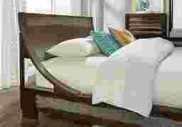 Sleep chic with the Harmony Place bed. Clean lines and a scoped style headboard make this platform bed a real stunner. It's crafted using high quality wood solids and veneers rendered in a brown-gray finish. This bed requires a mattress only, no boxspring is needed. Mattress only (sold separately) no boxspring required. Bed shown is queen size. Bed board required for mattress support.