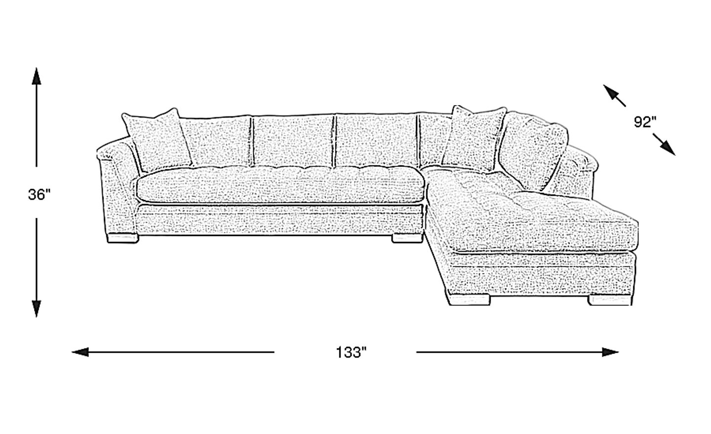 133.00"w x 92.00"d x 36.00"h