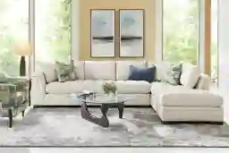 From spending time with family to cuddling up with your favorite novel, the Harper sectional from Cindy Crawford Home helps transform the space you spend so much time in into a world of peace and tranquility. Designed with a sleek, contemporary appearance, this collection features eye catching angled arms and tufted bench-style seat cushions and is upholstered with beige fabric that has a soft, velvety texture. Woodblock legs finished in a dark color ground the overall look with a sumptuous prestige. The sectional's right arm facing chaise and left arm facing sofa come with matching toss pillows that add an extra flourish of upscale uniformity to the piece. Upholstery: 100% Polyester.