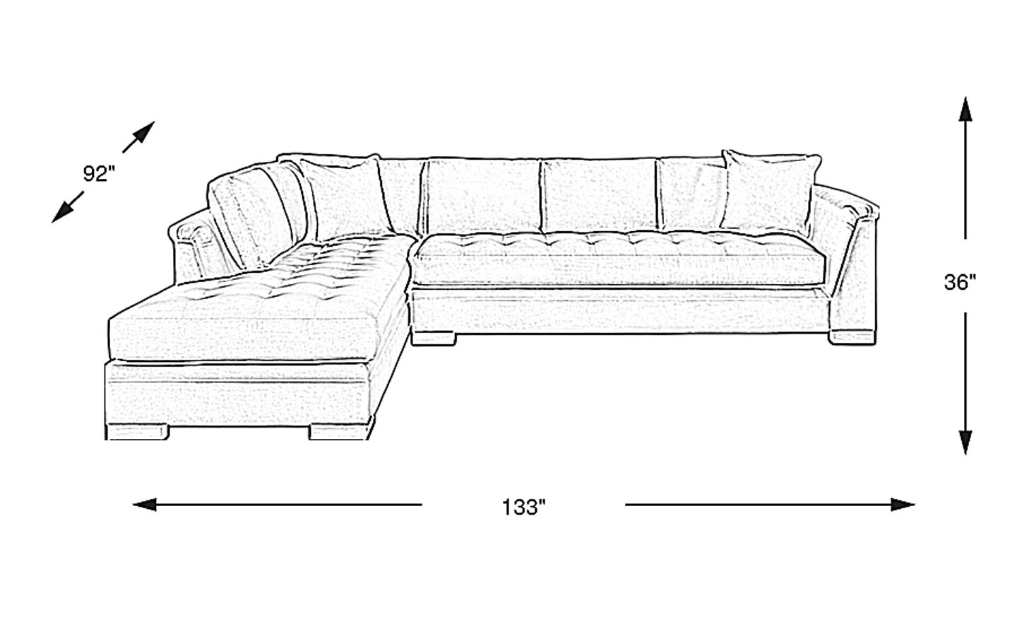 From spending time with family to cuddling up with your favorite novel, the Harper sectional from Cindy Crawford Home transforms the space you spend so much time in into a world of peace and tranquility. Designed with a sleek, contemporary appearance, this piece features eye catching angled arms and tufted bench-style seat cushions and is upholstered with blue fabric that has a soft, velvety texture. Woodblock legs finished in a dark color ground the overall look with a sumptuous prestige. The sectional's left arm facing chaise and right arm facing sofa come with matching toss pillows that add an extra flourish of upscale uniformity to the piece. Upholstery: 100% Polyester. Accent pillows not included.