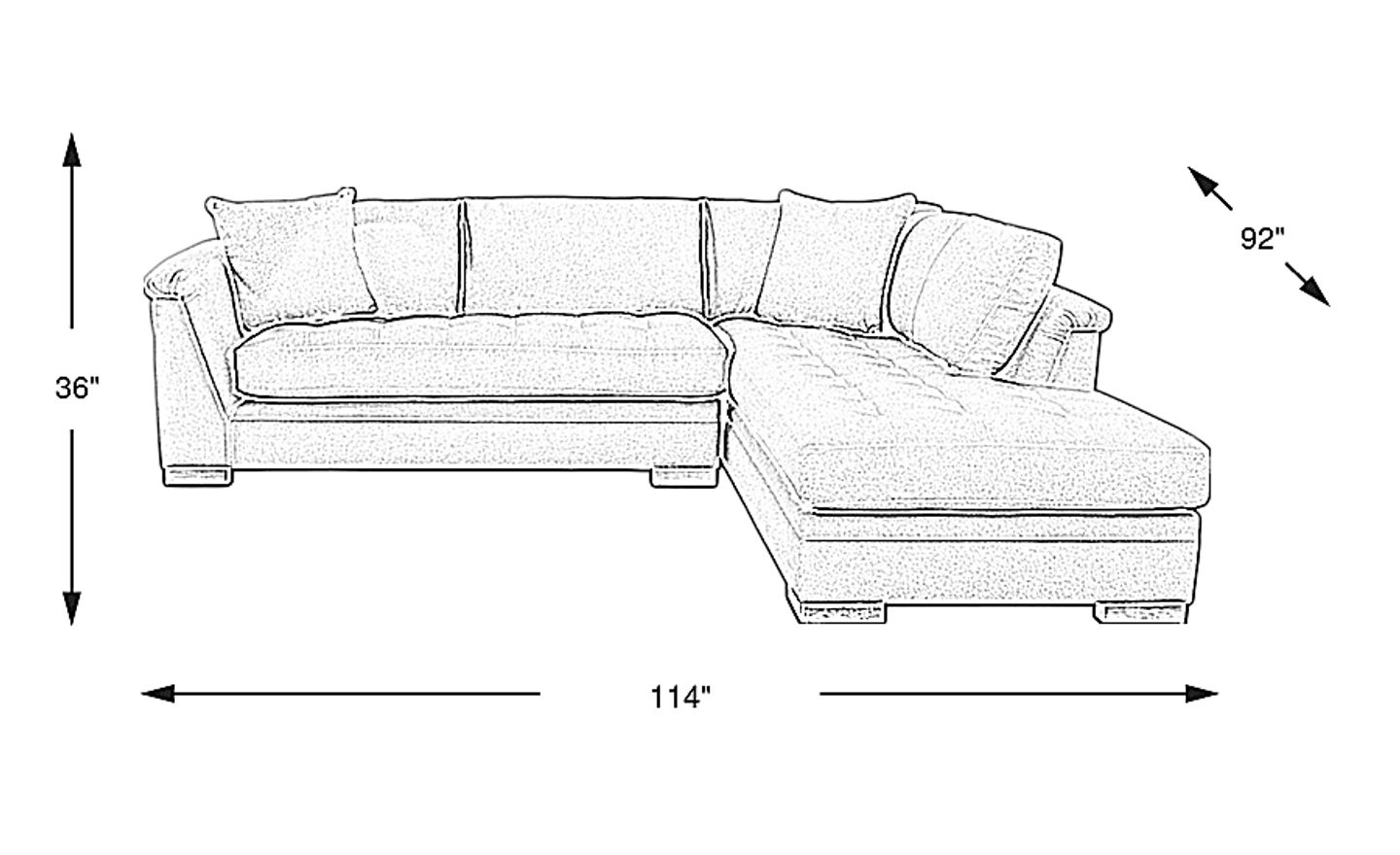 114.00"w x 92.00"d x 36.00"h