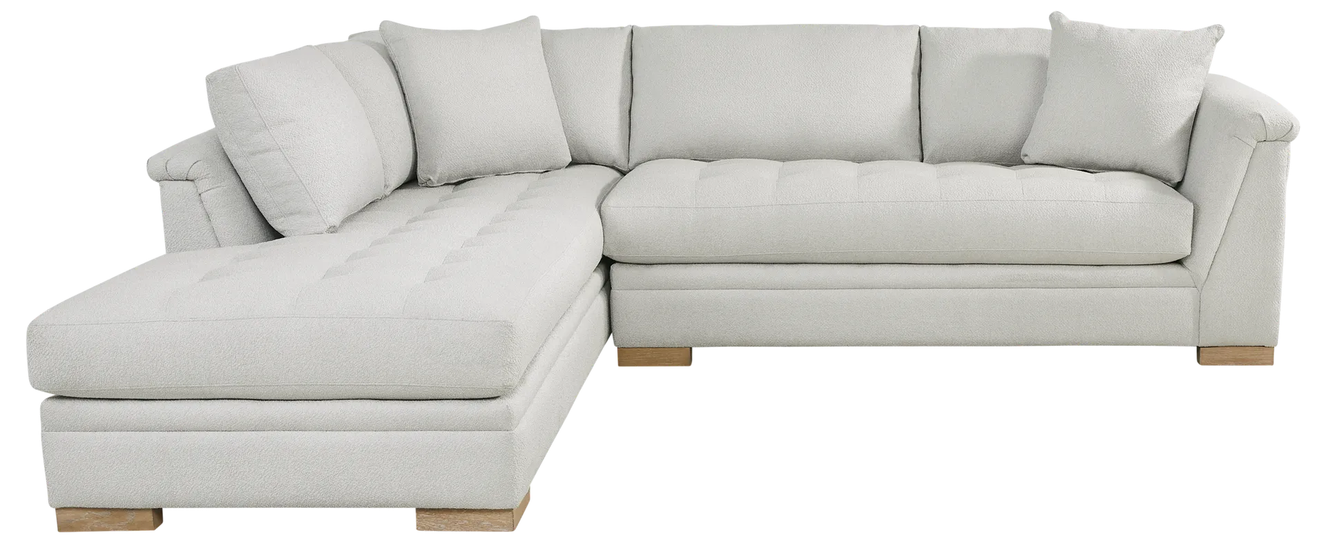 From spending time with family to cuddling up with your favorite novel, the Harper sectional from Cindy Crawford Home transforms the space you spend so much time in into a world of peace and tranquility. Designed with a sleek, contemporary appearance, this piece features eye catching angled arms and tufted bench-style seat cushions and is upholstered with steel fabric that has a soft, velvety texture. Woodblock legs finished in a dark color ground the overall look with a sumptuous prestige. The sectional's left arm facing chaise and right arm facing loveseat come with matching toss pillows that add an extra flourish of upscale uniformity to the piece. Upholstery: 100% Polyester. Accent pillows not included.