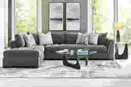 From spending time with family to cuddling up with your favorite novel, the Harper sectional from Cindy Crawford Home transforms the space you spend so much time in into a world of peace and tranquility. Designed with a sleek, contemporary appearance, this piece features eye catching angled arms and tufted bench-style seat cushions and is upholstered with steel fabric that has a soft, velvety texture. Woodblock legs finished in a dark color ground the overall look with a sumptuous prestige. The sectional's left arm facing chaise and right arm facing sofa come with matching toss pillows that add an extra flourish of upscale uniformity to the piece. Upholstery: 100% Polyester. Accent pillows not included.