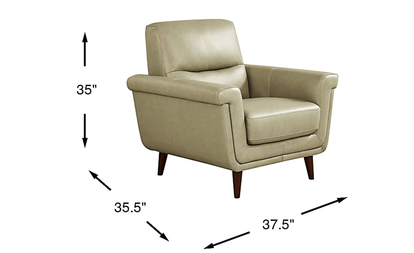 Has a walk in the park has ever been as elegant and stylish as the Harrington Park chair's gorgeous top grain leather and sophisticated lines and curves? This transitional piece in a stone color features padded outside arms and backs as well as contoured mailbox arms for an utterly handsome silhouette. Attached seat cushions are accompanied by attached back cushions replete with welting for the perfect cosmopolitan touch. Tapered square leg with a warm brown finish provide the final touch for a luxurious trip into your own personal relaxation station. Upholstery: Top grain leather where the body touches and polyurethane fabric sides and backs. Leather is a durable, low maintenance product, however, general regular maintenance is necessary. To keep your leather clean, vacuum it regularly, removing any dust, and clean it with water and a mild non-detergent soap.