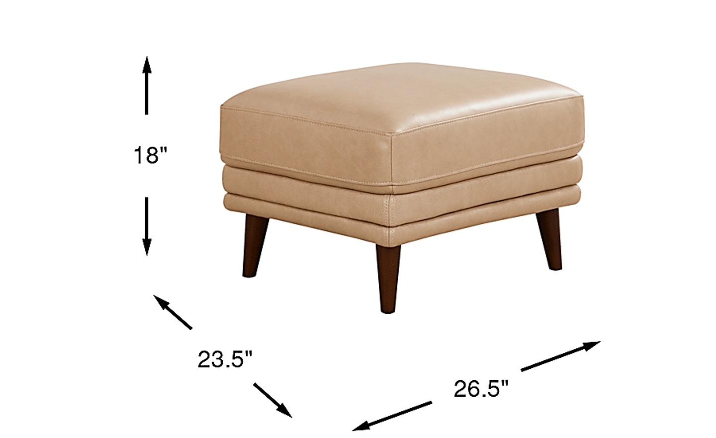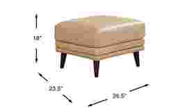 Has a walk in the park has ever been as elegant and stylish as the Harrington Park ottoman's gorgeous top grain leather and sophisticated lines and curves? This transitional piece in a stone color can be used as a seat, footrest or a cocktail table to add the perfect cosmopolitan panache. Tapered square leg with a warm brown finish provide the final touch for a luxurious trip into your own personal relaxation station. Upholstery: Top grain leather where the body touches and polyurethane fabric sides and backs. Leather is a durable, low maintenance product, however, general regular maintenance is necessary. To keep your leather clean, vacuum it regularly, removing any dust, and clean it with water and a mild non-detergent soap.
