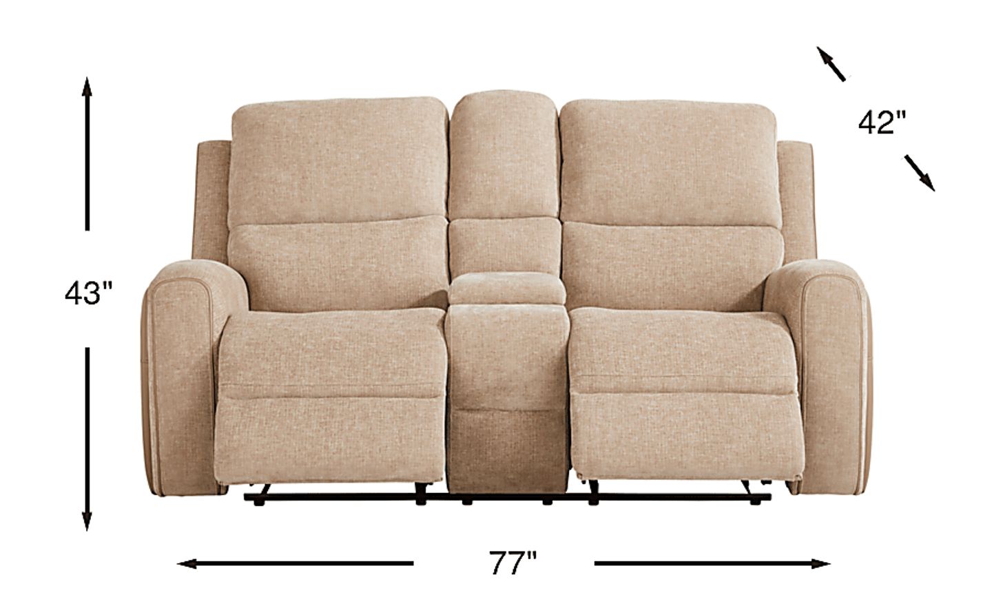 Yes. With a width of 77 inches, this loveseat provides the luxury of dual reclining and a center console within a relatively compact footprint. Its scale is ideal for urban apartments or secondary living spaces where you want full "theater-style" functionality without overcrowding the room. The low-profile leg style further contributes to a streamlined look that suits smaller environments.